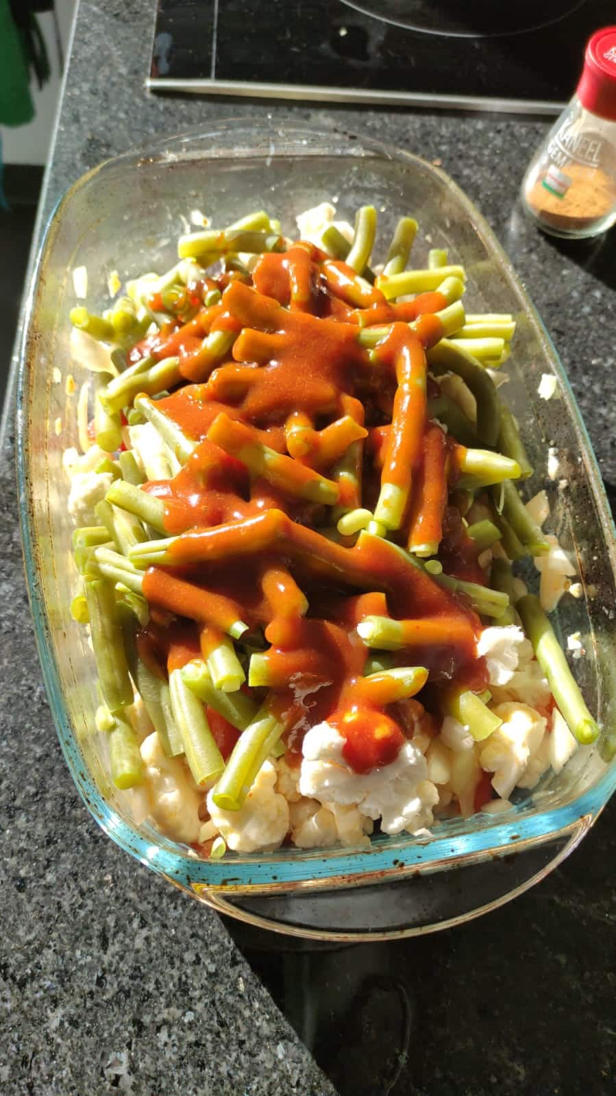 Komt er op neer, de groenteboer Hoonhorst had bonen en bloemkool in de aanbieding. Dus ja haha, wat ga je dan maken met zoiets op de maandag? Dus ff google raad plegen en ACTIE voor de vrouw thuis komt en hellig wordt dat er geen vreten klaar staat:)