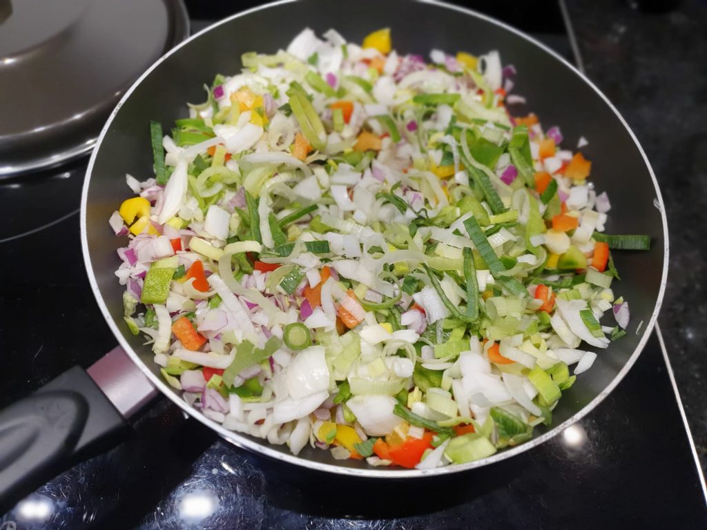 Wok de groente ongeveer 2 minuten op middelmatig gas en haal dan van het gas af.