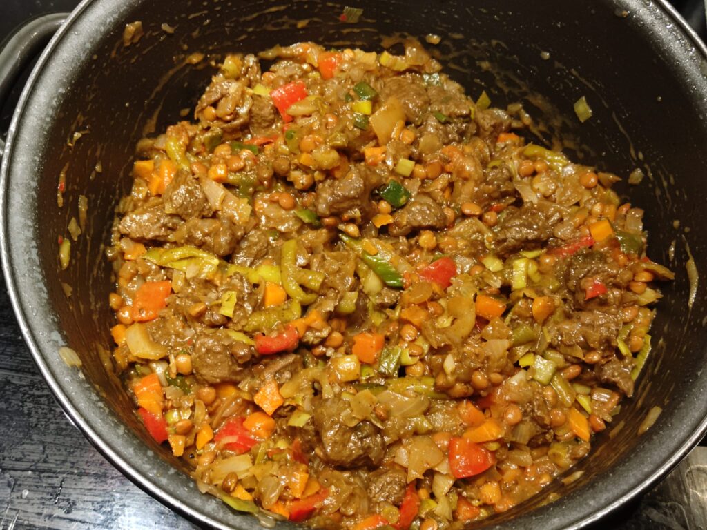 Als de runderstoofpot 2 uur lang heb gestooft dan afgieten, pleur nu de groentenzooi erbij in en vreten maar. Ik bedoel: Eet smakelijk mafkees, latersssss. Rundvlees kun je ook prima bereiden in de Airfryer of stoomoven.